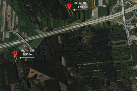 Przedmiotem sprzedaży są dwie działki leśne o nr. ewidencyjnych 126 oraz 91, które łącznie dają powierzchnie 1,95 ha.