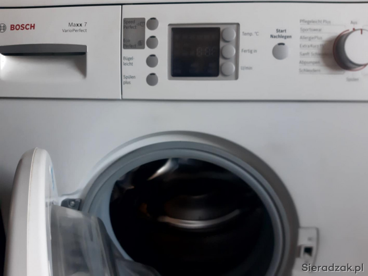 Używana pralka Bosch z gwarancją na 7 kg prania,wyprodukowana na rynek zachodni -bardzo dobry model; energooszczędna, mały pobór wody, mało używana; dowóz.