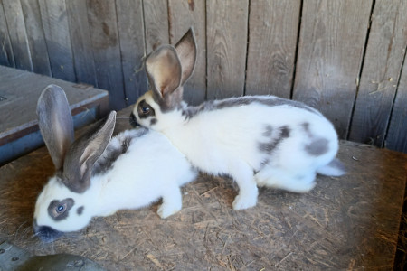 Witam, sprzedam młode samiczki czystej rasy Olbrzym Srokacz Niebieski. Cena 60zl szt. Tel 7 3 0 1 3 9 7 9 6