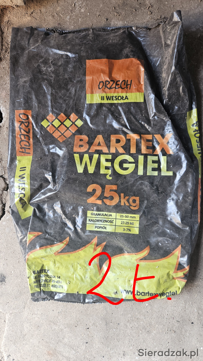 Sprzedam węgiel 2 tony ORZECH 2 Bartex z kopalni Wesoła .