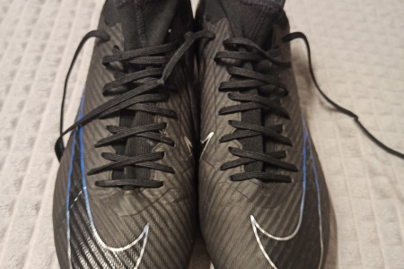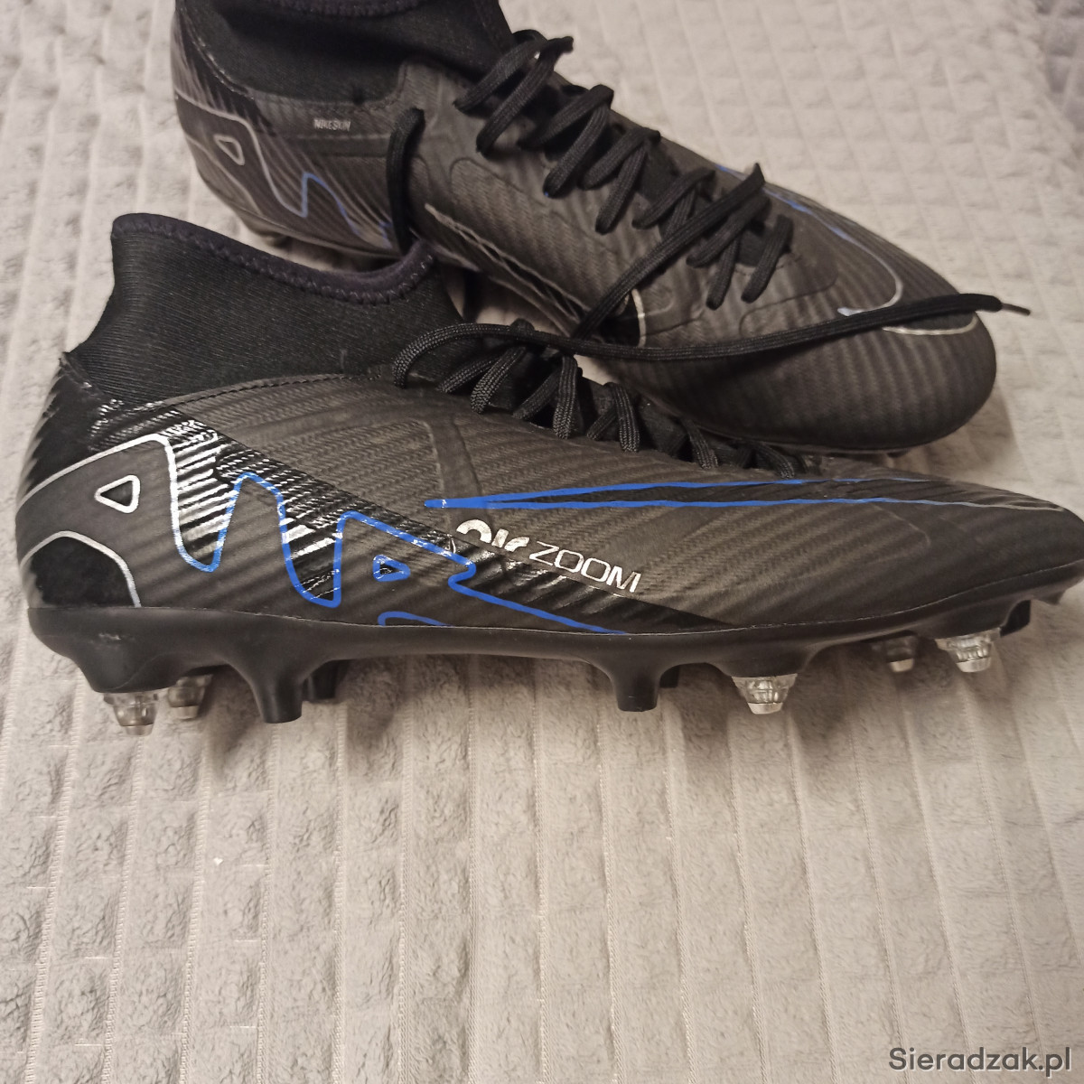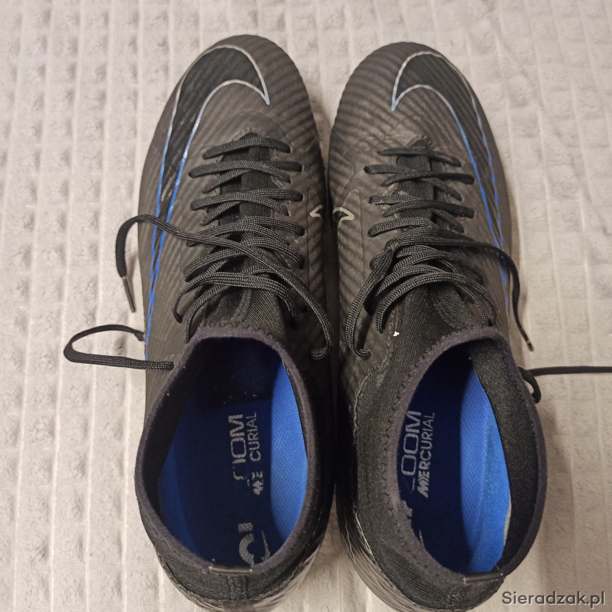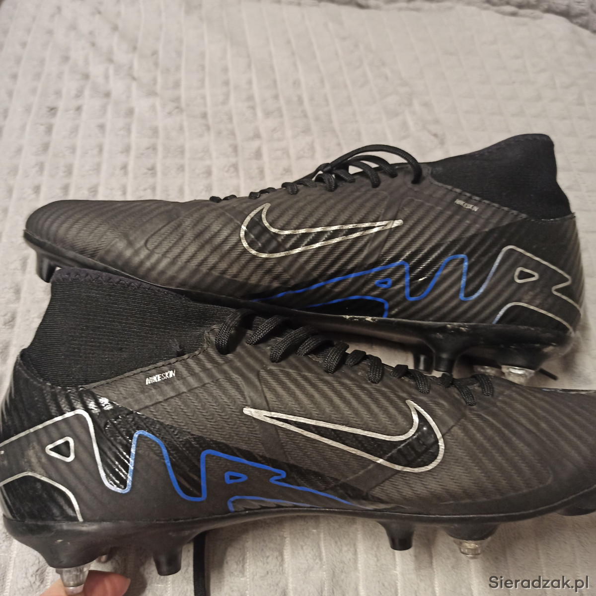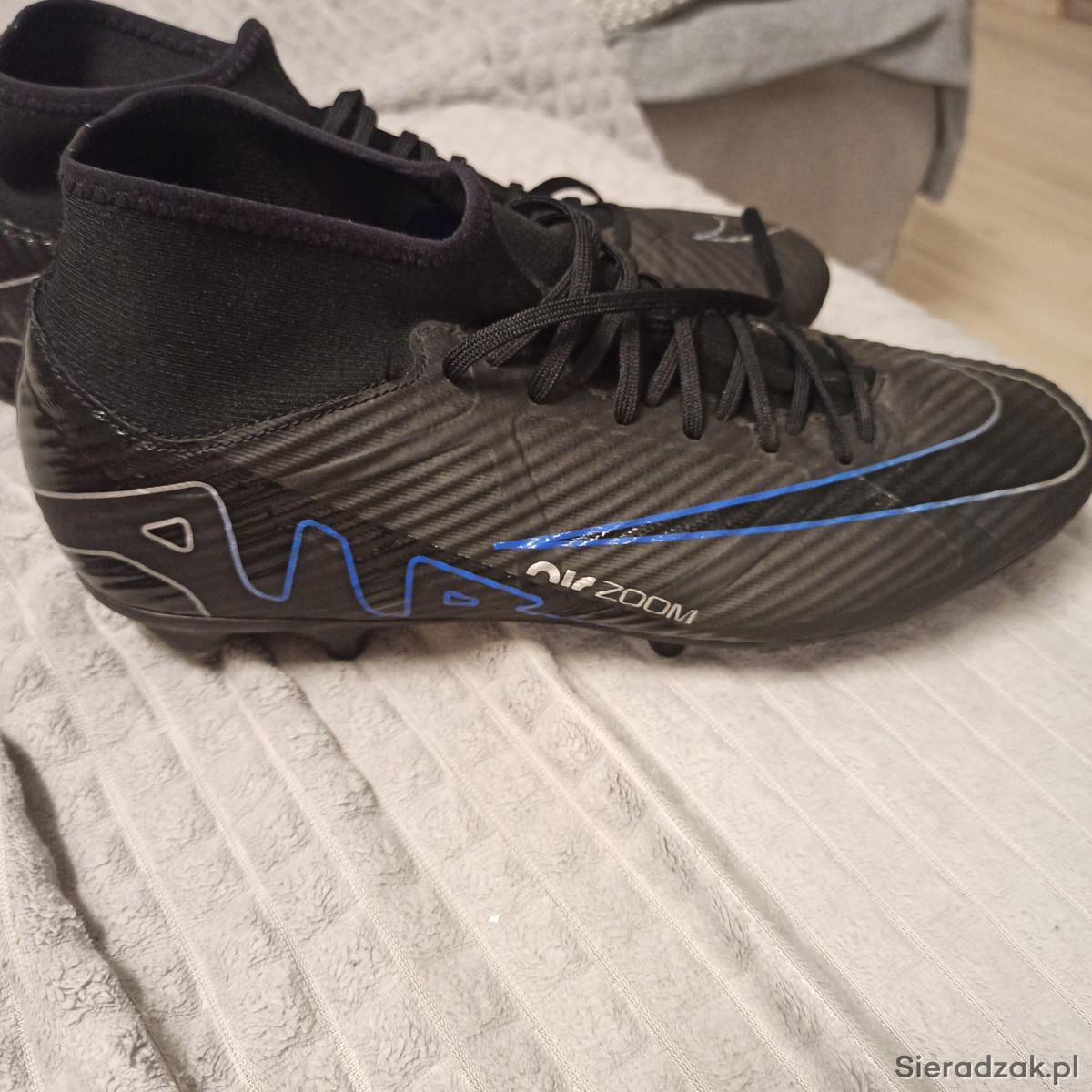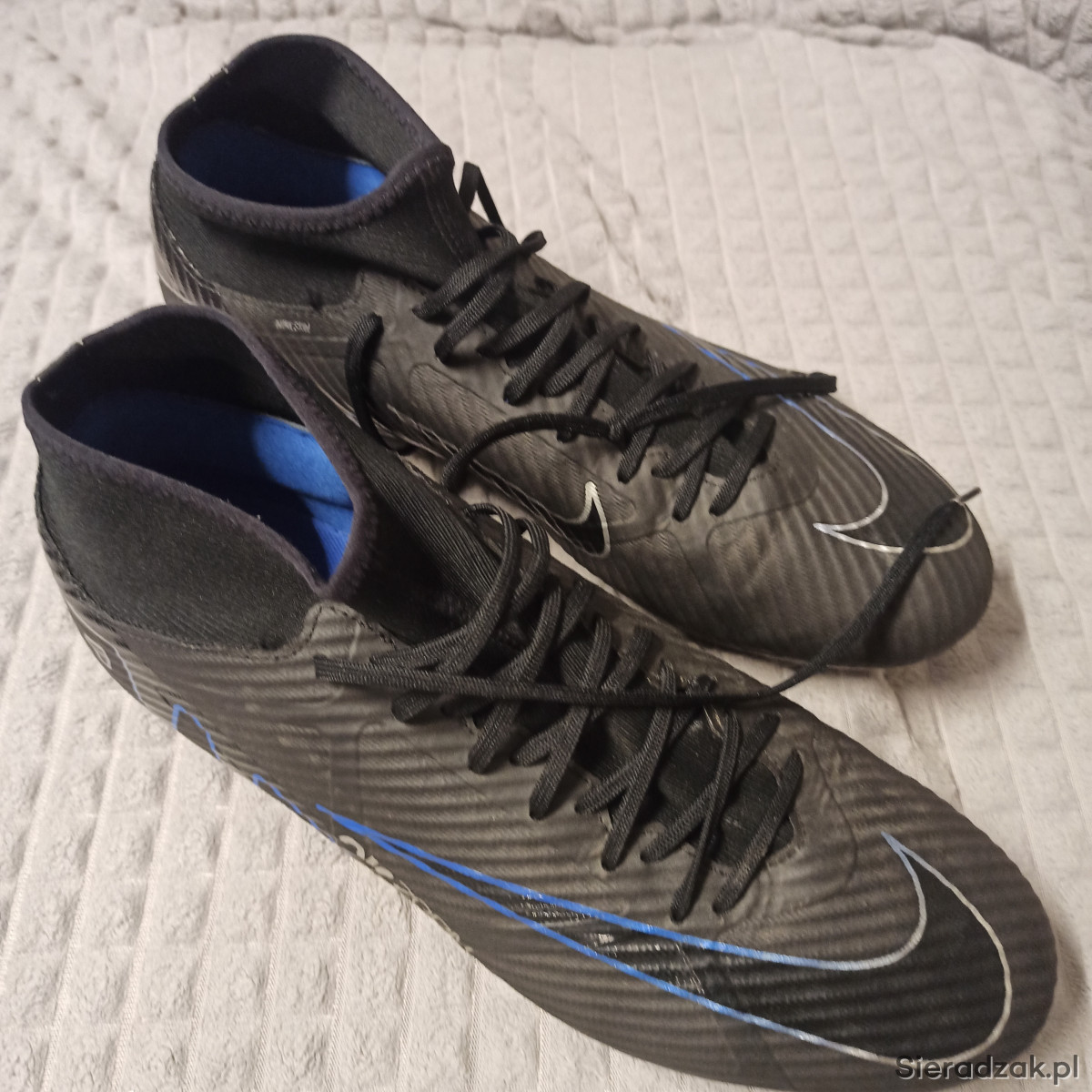Korki piłkarskie Nike Zoom Mercurial Superfly 9 Academy Pro Soft w kolorze czarno-niebieskim. Rozmiar 45,5. Lekkie, wygodne i wytrzymałe. W lewym bucie brak jednego korka. Poza tym stan idelany.