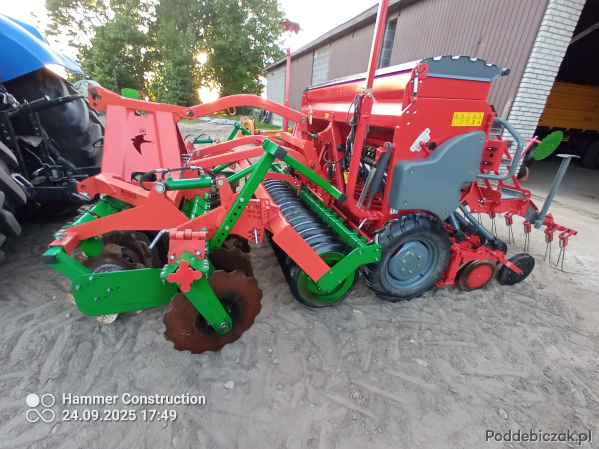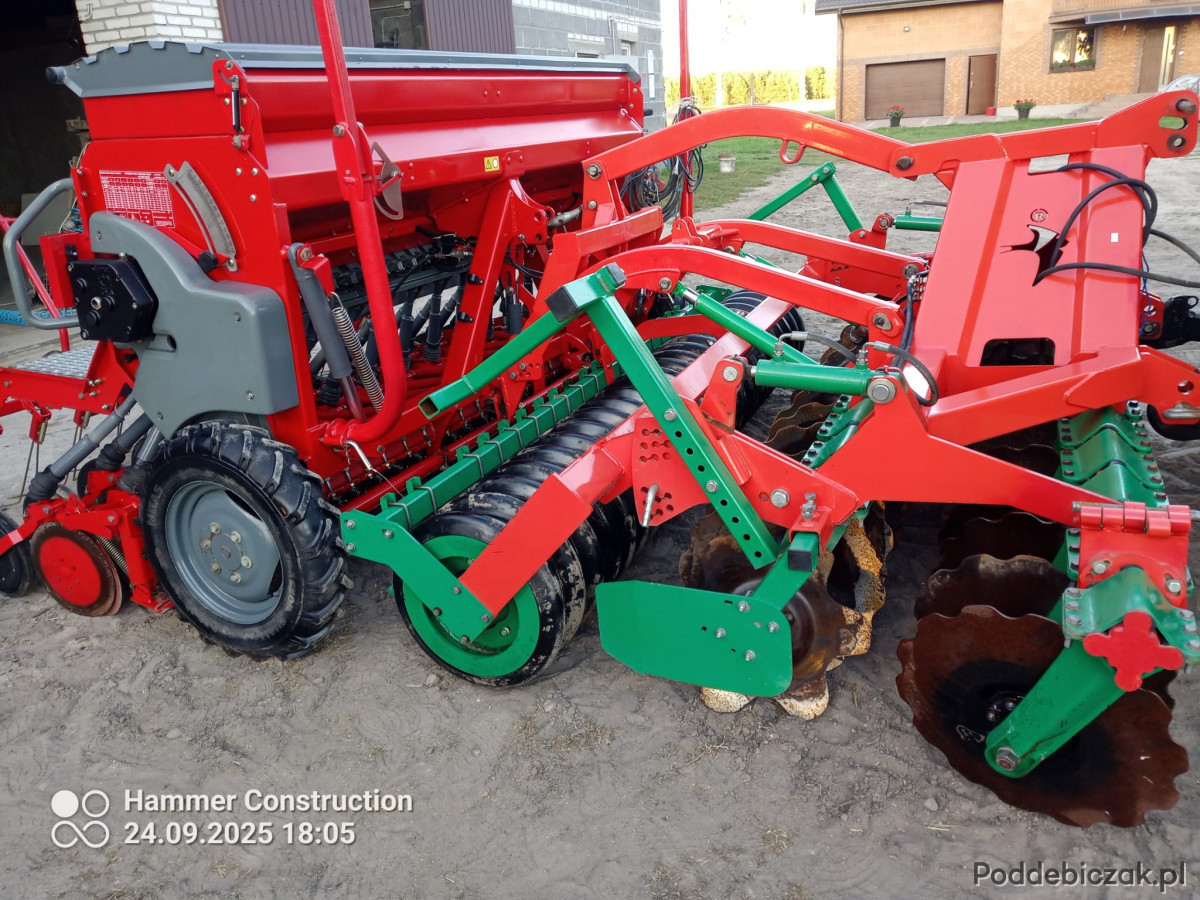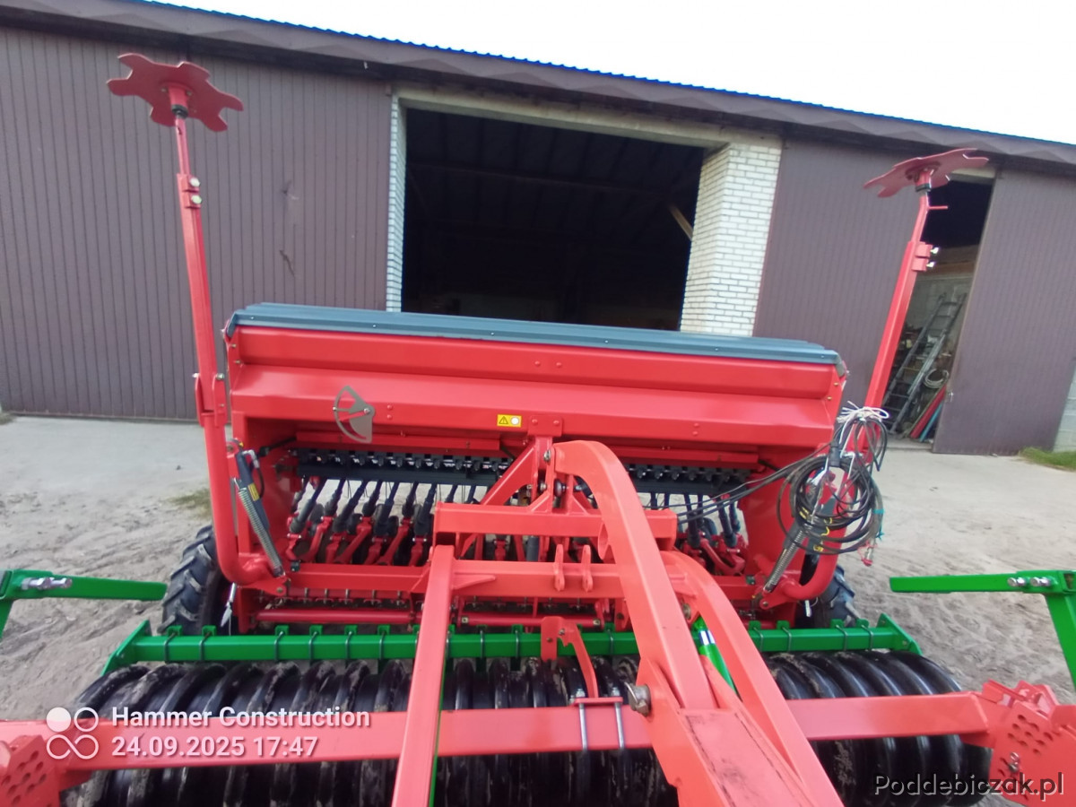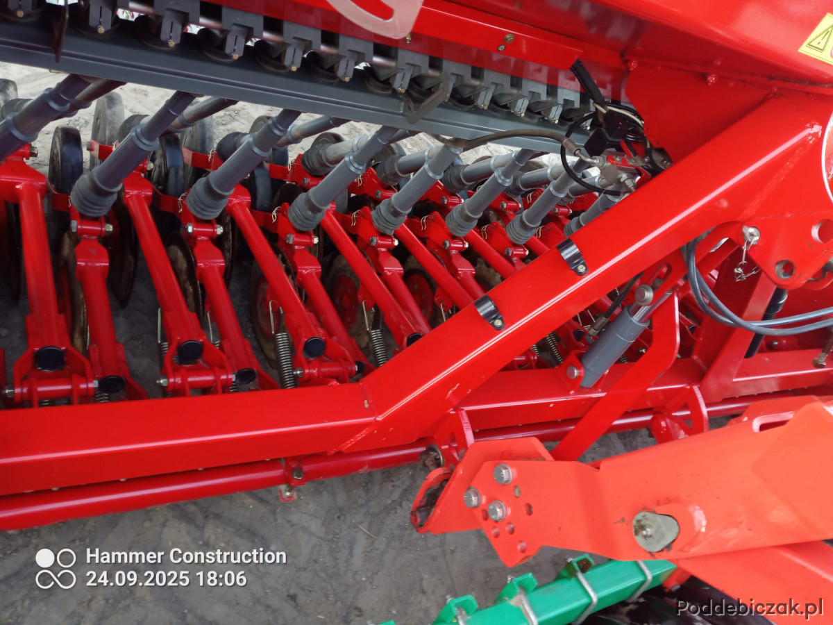 Dodatkowo w zestawie znajduje się agregat talerzowy wyposażony w talerze o średnicy 560 mm, które gwarantują skuteczne i równomierne spulchnianie gleby nawet w trudniejszych warunkach. Maszyna posiada także wał gumowy, odpowiadający za idealne zagęszczenie i wyrównanie podłoża, co bezpośrednio przekłada się na lepsze warunki wschodów roślin.