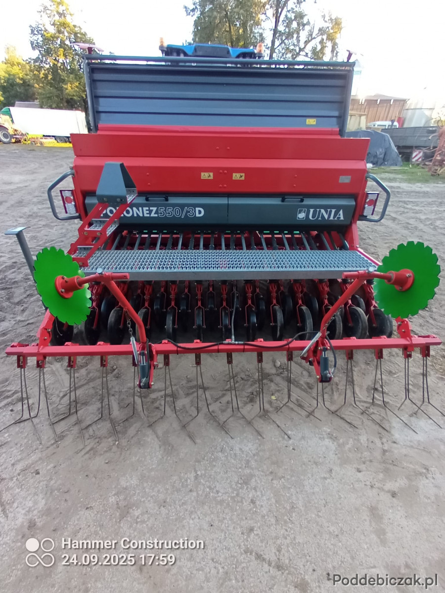 Na sprzedaż oferuję (siewnik Polonez 550/3D firmy UNIA), w pełni wyposażony i gotowy do pracy w polu. Maszyna charakteryzuje się wysoką funkcjonalnością, solidnym wykonaniem oraz bardzo bogatym wyposażeniem w nowoczesne rozwiązania, które znacząco ułatwiają i usprawniają pracę.