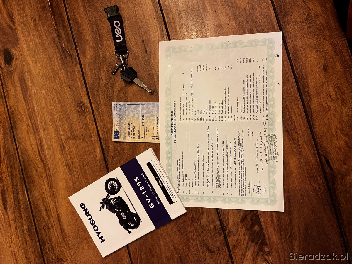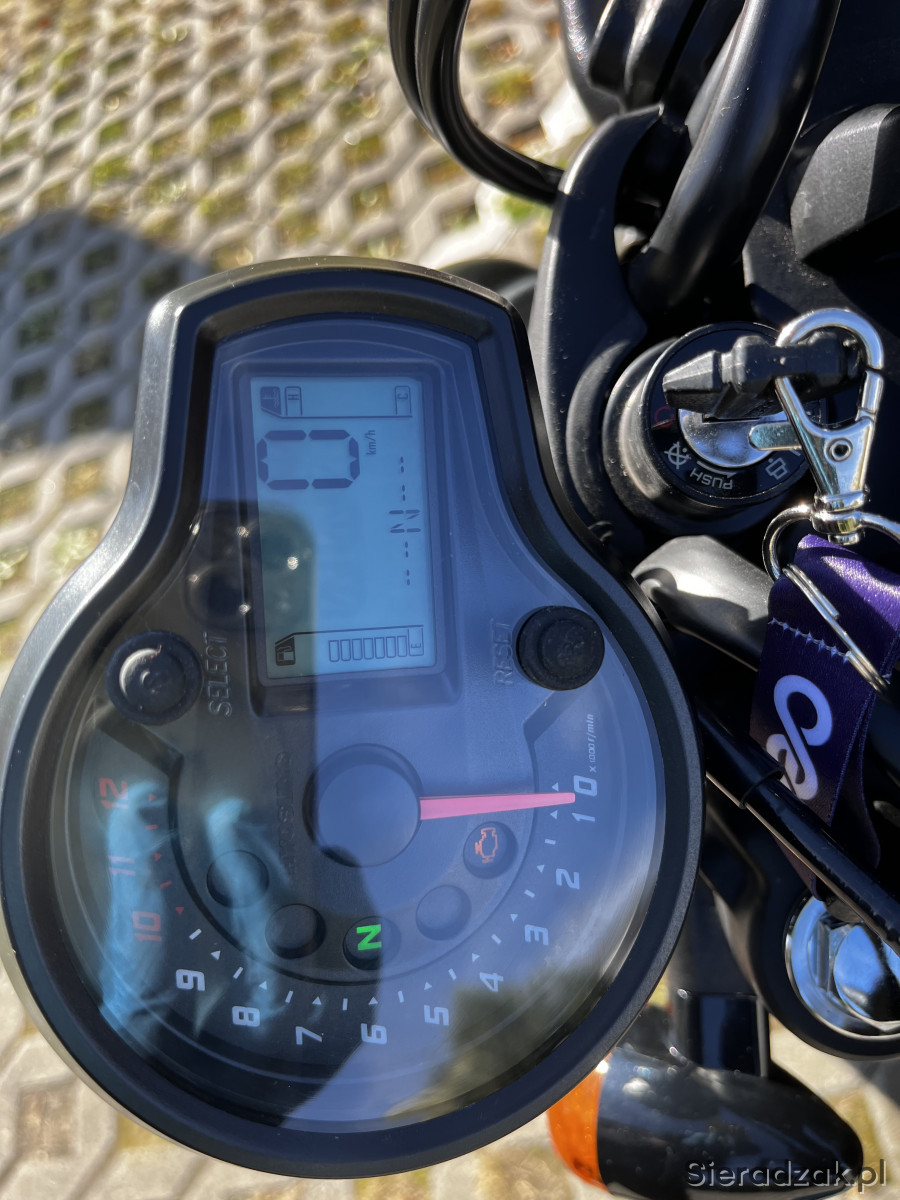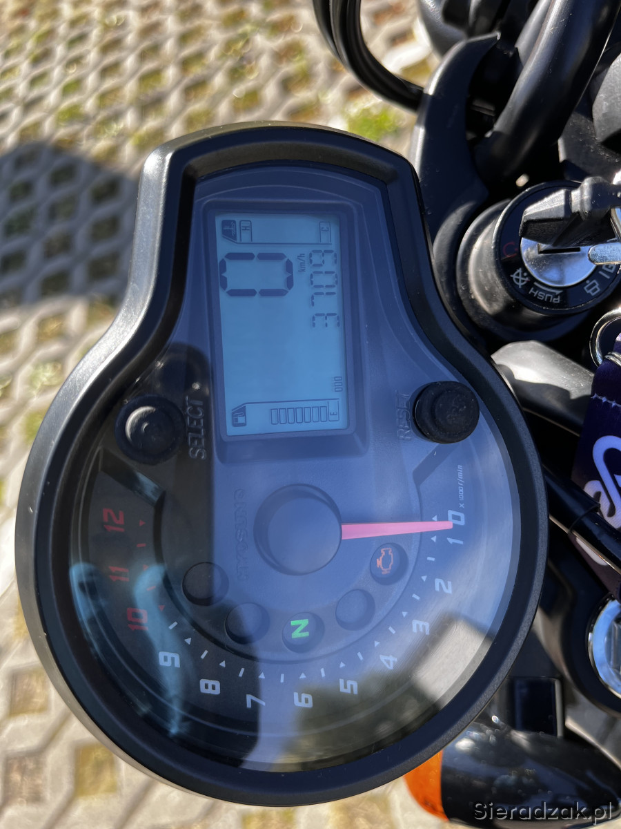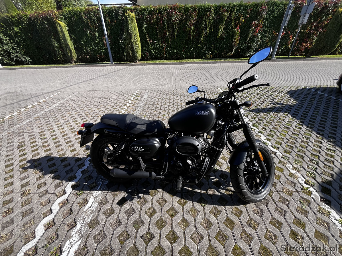 Sprzedam motocykl Hyosung GV125S, zakupiony w sierpniu 2024 roku w sklepie bikemaster.pl. Przebieg 3700 km (przy zakupie miał 1000 km). Stan idealny, zadbany, użytkowany amatorsko i rekreacyjnie. Wszystkie serwisy wykonywane na bieżąco. Świeży olej i filtr. Wydech custom z dbkillerem, brzmi rasowo. Oryginalny wydech oddaję z motocyklem.