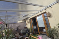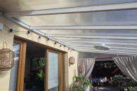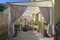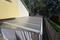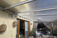 Praktyczna i funkcjonalna pergola/zadaszenie, które zapewni Ci cień i prywatność na tarasie lub w ogrodzie. Wykonana z trwałych materiałów, z przeszklonym dachem, który przepuszcza światło. Idealnie sprawdzi się jako dodatkowa przestrzeń wypoczynkowa w Twoim domu.