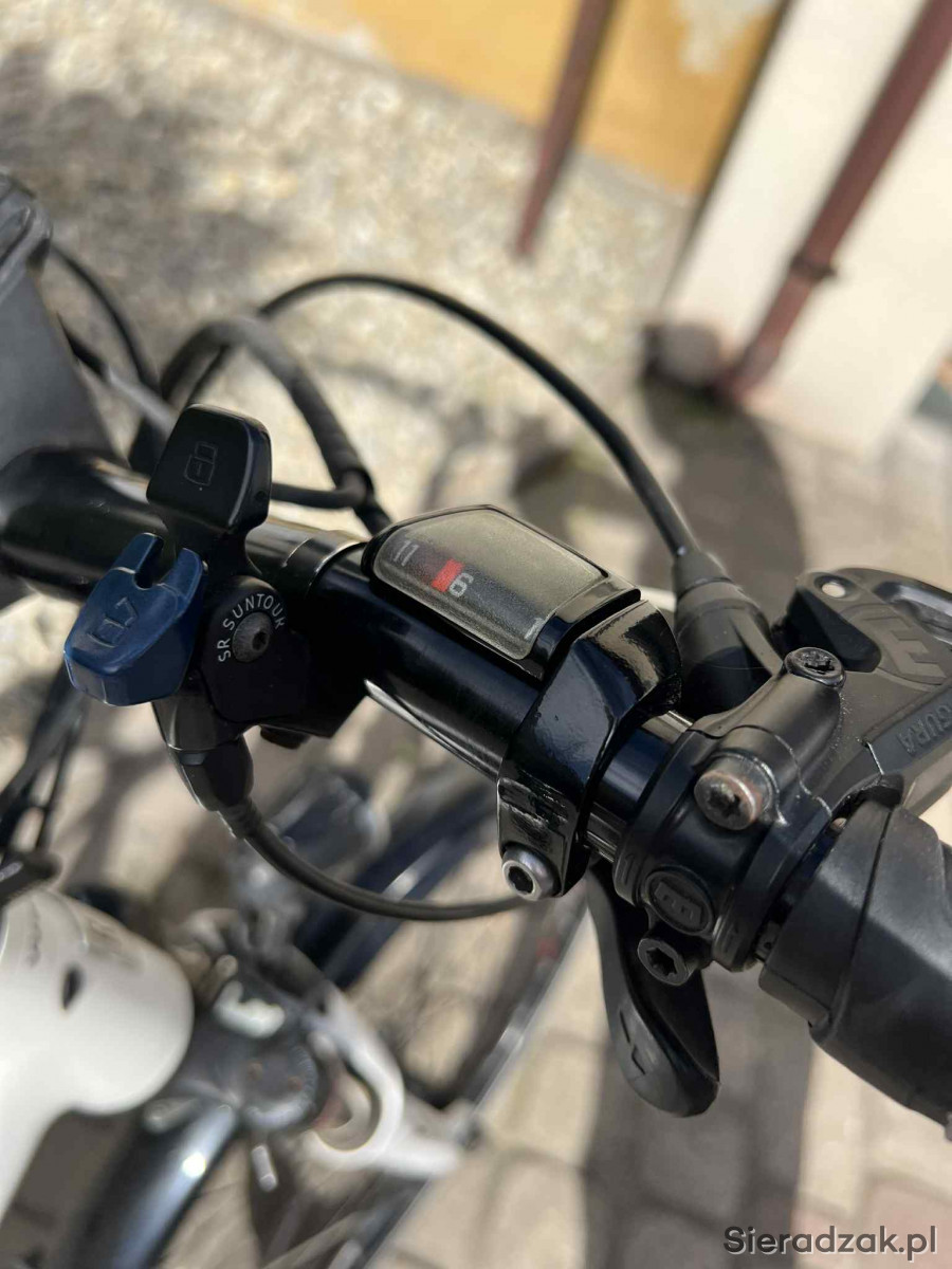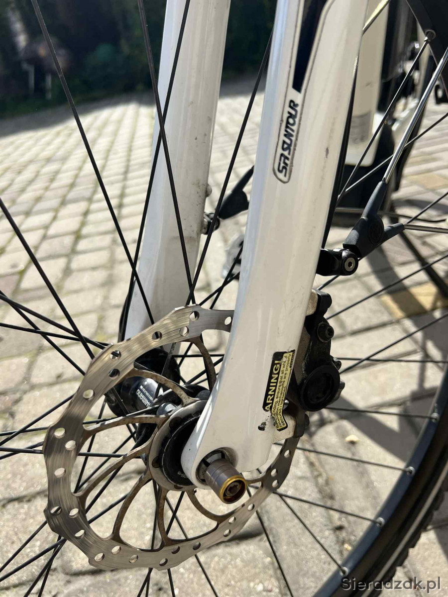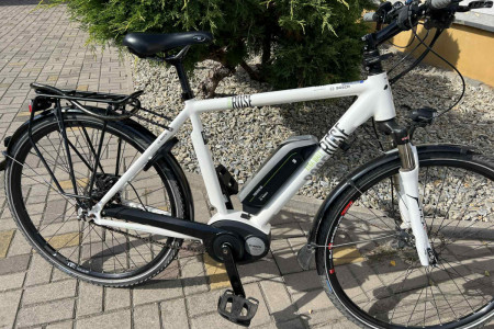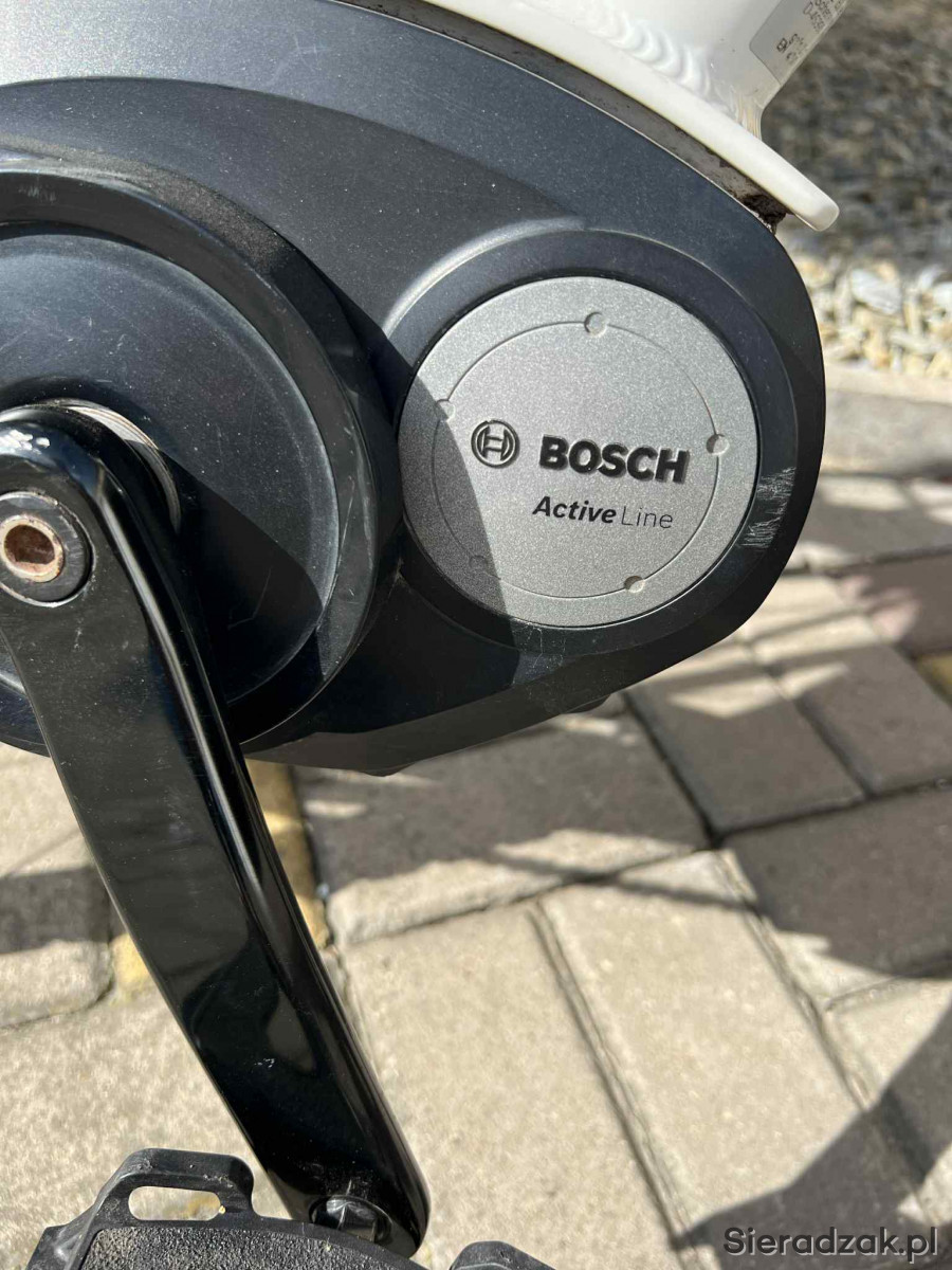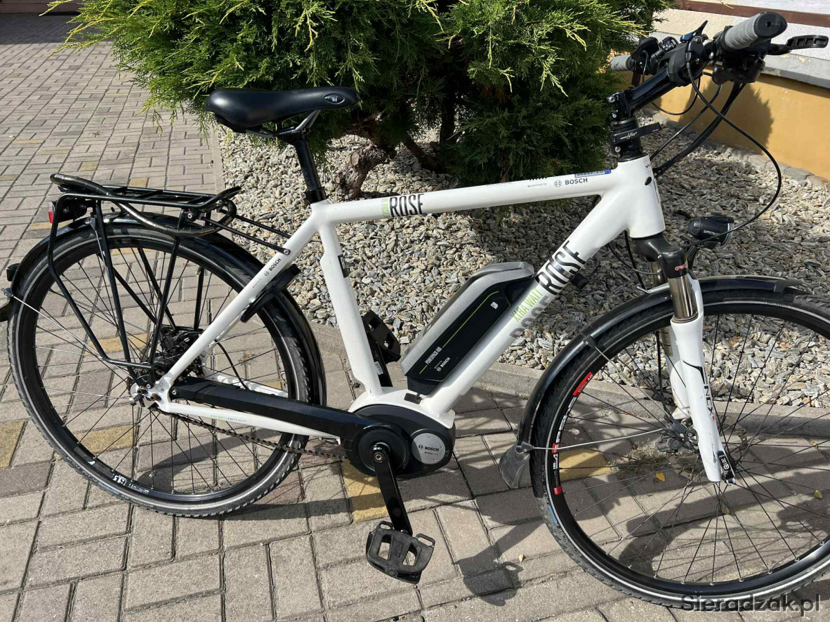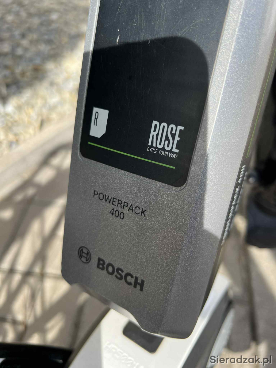 Rower elektryczny niemieckiej firmy Rose Xtra Watt trakingowy miejski. Bateria 400 Bosch, silnik Bosch Active Line umieszczony w jego centralnej części, w okolicach mechanizmu korbowego (przy pedałach). Hamulce tarczowe hydrauliczne. Biegi 11 w piascie tylnej. Blokada przedniego teleskopu przy kierownicy. Rower w bardzo dobrym stanie.