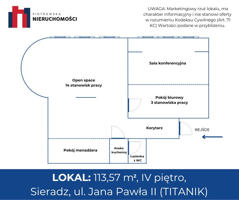 Biuro 113,57 m² – Jana Pawła II 52, Sieradz (Budynek „TITANIK”)