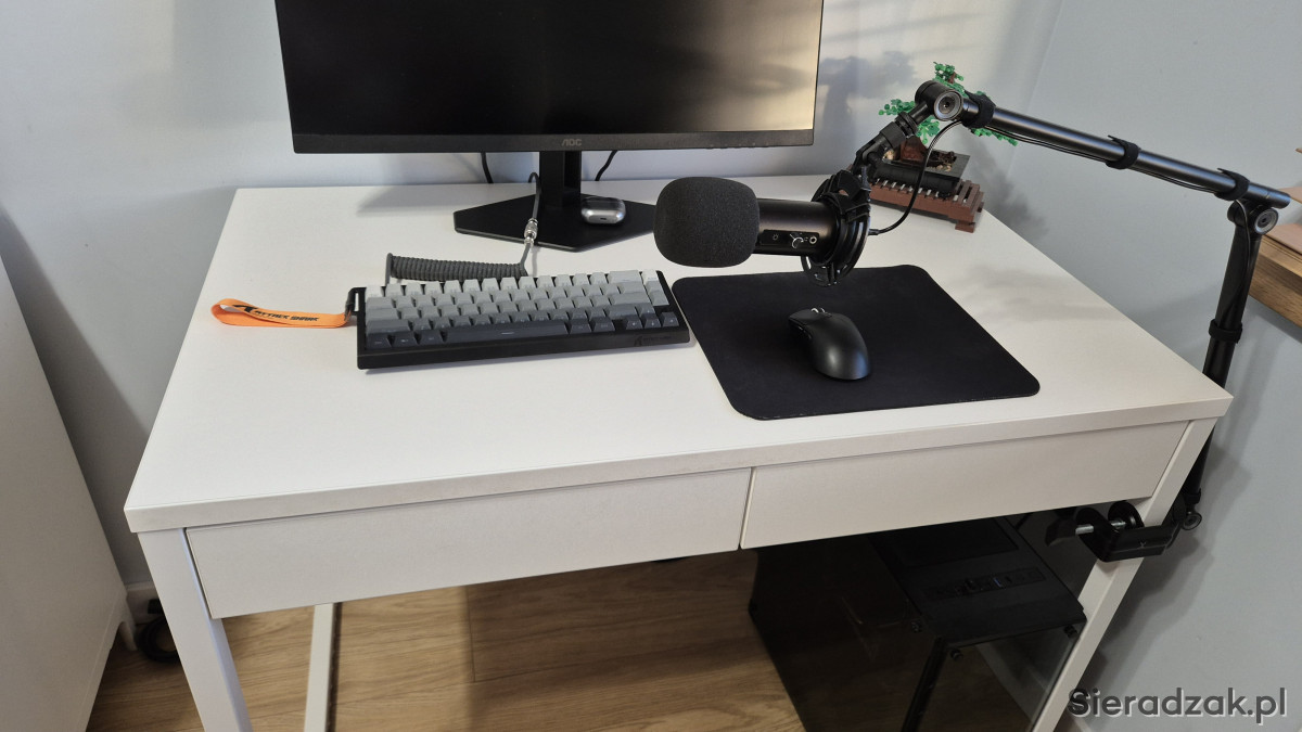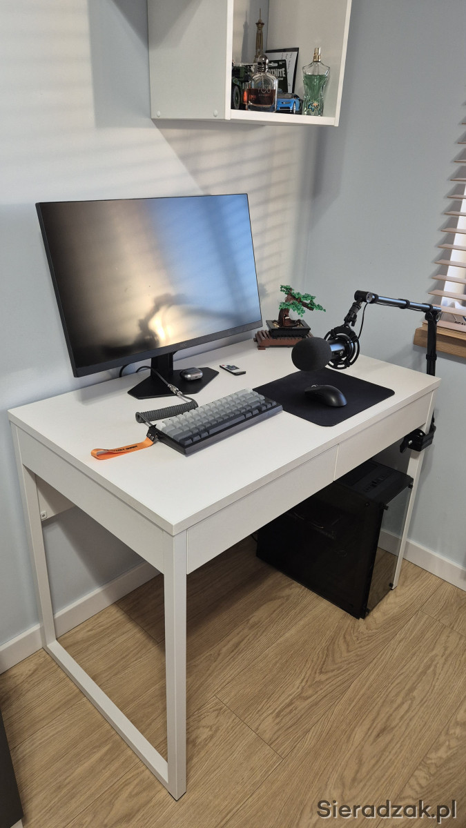 Sprzedam mało używane białe biurko z Meblika. Wymiary 100 cm , głębokie 60 cm, 2 szuflady, nogi metalowe białe.