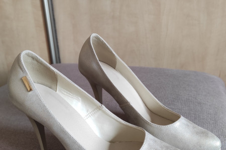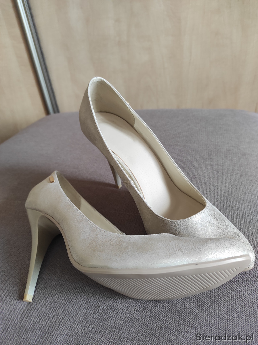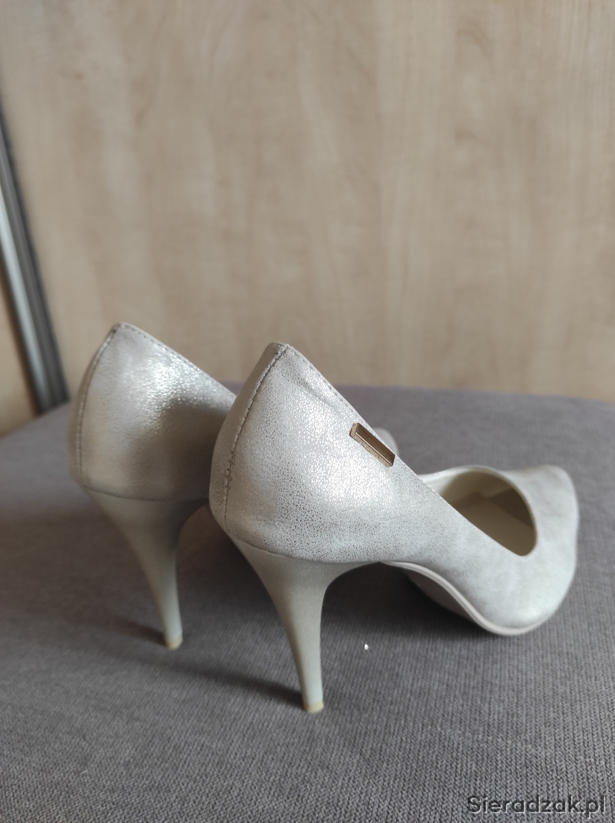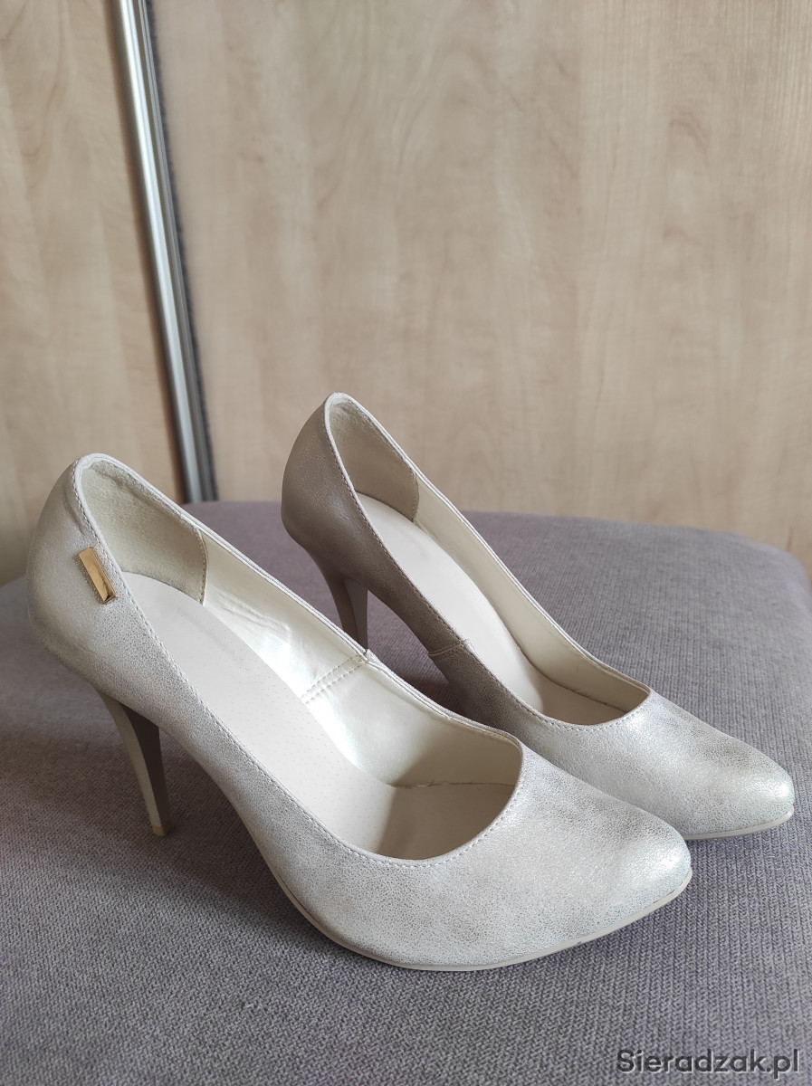 Nowe szpilki z połyskiem, rozmiar 39, wysokość obcasa 10 cm, niestety dla mnie za wysokie