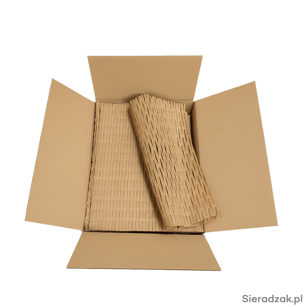 Ekologiczny wypełniacz papierowy typu plaster miodu – idealny do bezpiecznego pakowania i zabezpieczania produktów w transporcie. Wykonany z wytrzymałego kraftu, stanowi przyjazną dla środowiska alternatywę dla folii bąbelkowej.
