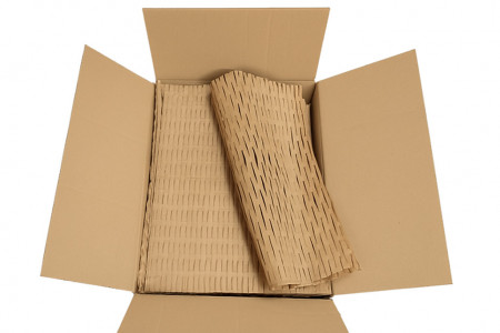 Ekologiczny wypełniacz papierowy typu plaster miodu – idealny do bezpiecznego pakowania i zabezpieczania produktów w transporcie. Wykonany z wytrzymałego kraftu, stanowi przyjazną dla środowiska alternatywę dla folii bąbelkowej.
