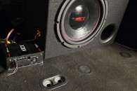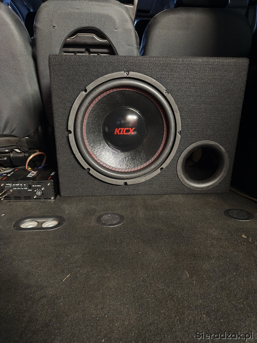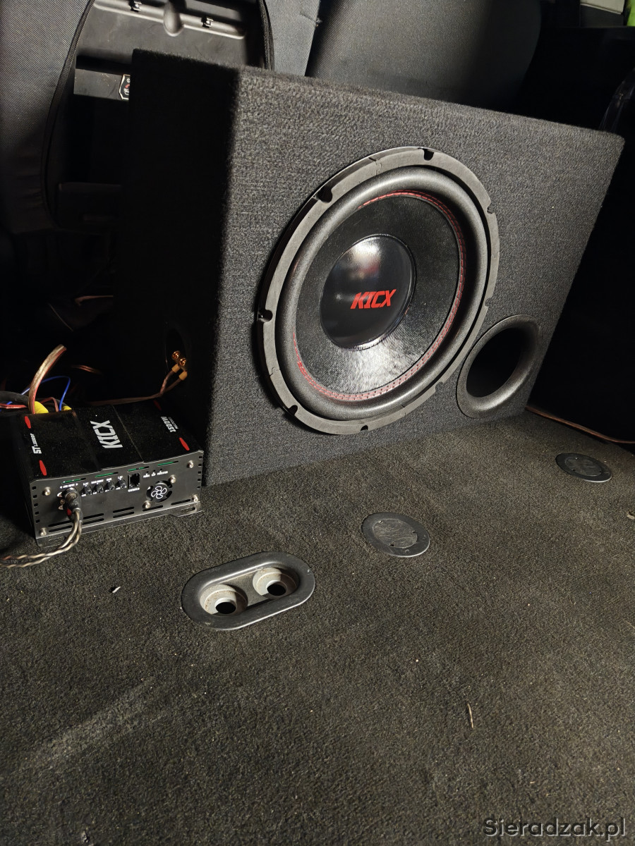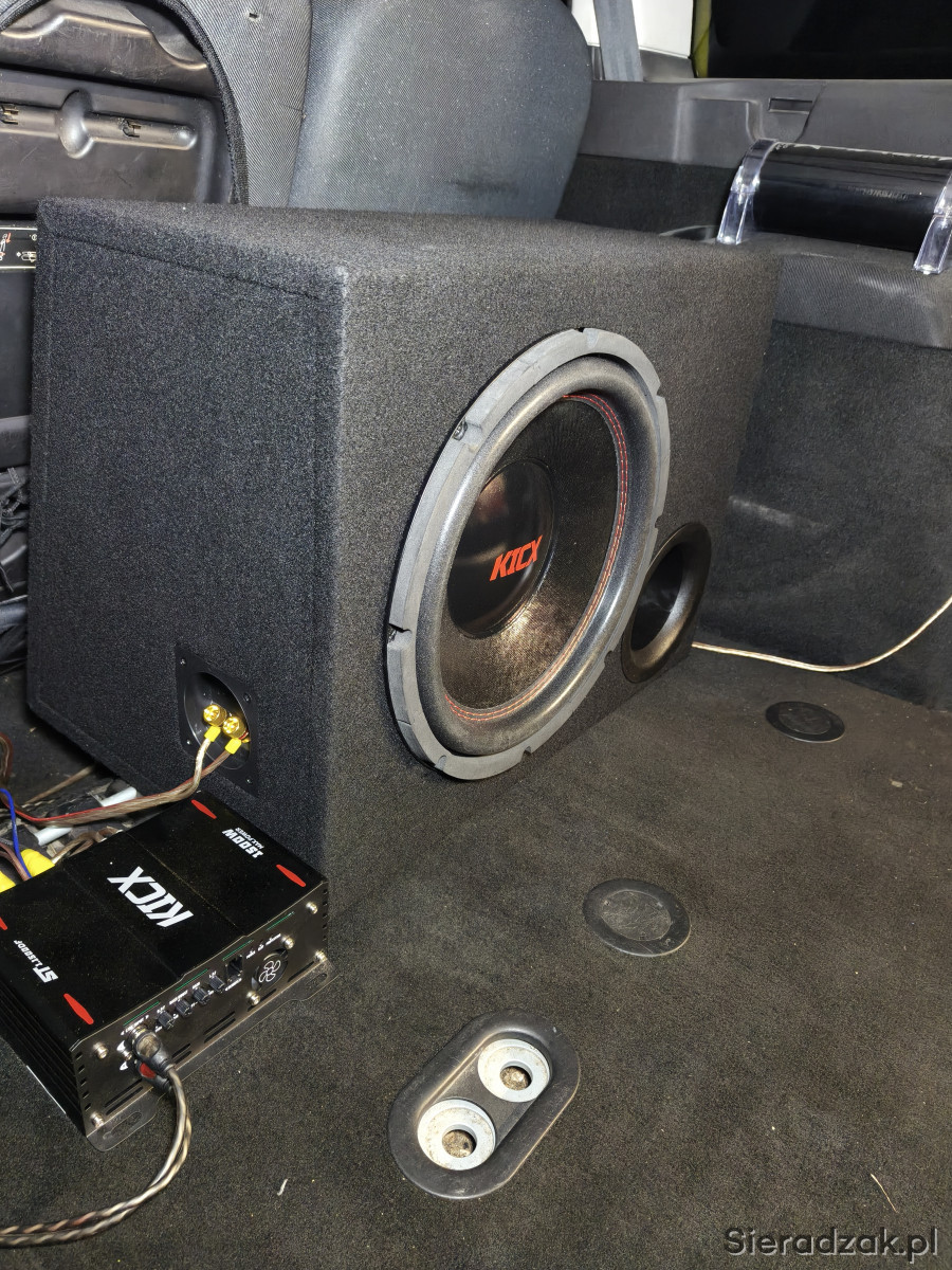 Sprzedam nową skrzynie z nowym głośnikiem 2x2 ohmy 500watt rms z nowym wzmacniaczem kicx 1500watt rms zestaw podłączony tylko na chwilę na próbę