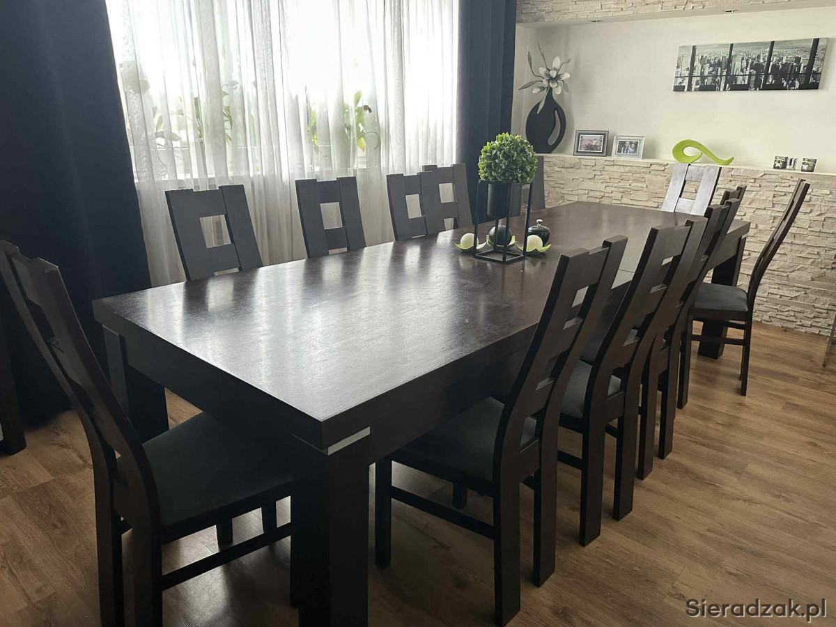Na sprzedaż stół z 12 krzesłami, stół rozkłada się, posiada 2 wkładki. Wyłącznie odbiór osobisty w miejscowości Brąszewice 98-277