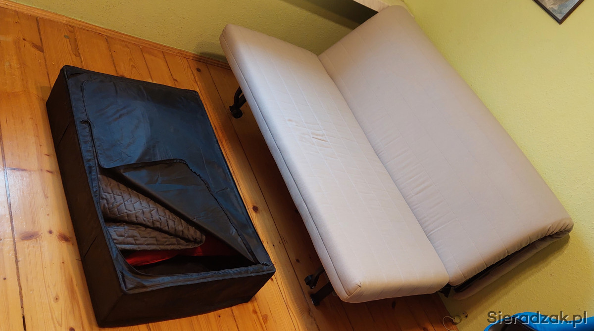 Dzień dobry. Mam do sprzedania w bardzo dobrym stanie kanapę z funkcja spania. Rozkładna część ( 185 cm x 140 cm) + pokrowiec + pojemnik na pościel + poduszki . Tel. 695 464 464