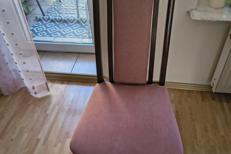 Komplet 6 krzeseł, kolor brąz , tapicerka brudny róż.