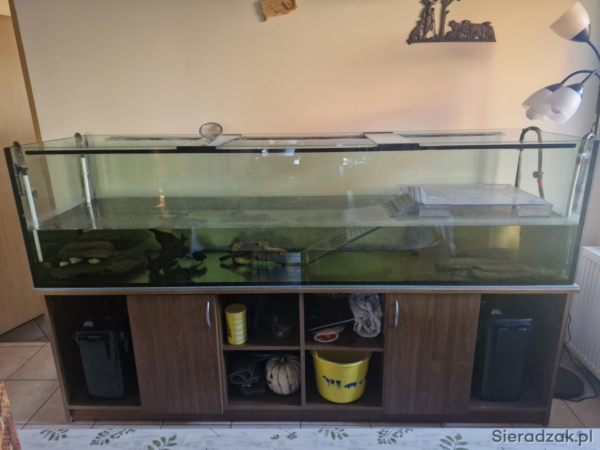 Mam na sprzedaż akwarium o wymiarach 230x60x60 cm wraz z szafką. W zestawie również pokrywa oraz duże głazy oraz ozdobne małe kamienie.