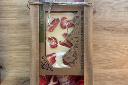 Biała czekolada rzemieślnicza z truskawkami liofilizowanymi