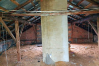 Budynkiem gospodarczym o powierzchni zabudowy 59 m². Budynek wymaga wymiany dachu (więźby dachowej - wydane pozwolenie na budowę)