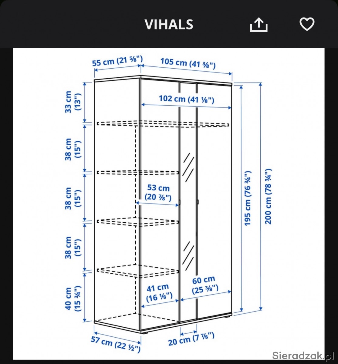 Szafa VIHALS ( IKEA ) użytkowana około półtora roku, nosi zwykłe ślady użytkowania ( widoczne na zdjęciach ) + zdjęcia poglądowe ze strony IKEA