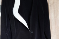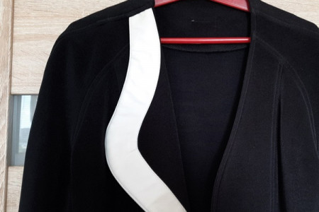Sprzedam ŻAKIET-MARYNARKA damska, rozmiar M, czarny, niepowtarzalny fason, z oryginalną białą skóropodobną wstawką z jednej strony dekoltu, zapinany na jeden ozdobny guzik; lekko taliowany; piękny materiał, lekko rozciągliwy, nie wymaga prasowania, całoroczny. Doskonały do różnych stylizacji, bardzo praktyczny i zawsze swoim wylądem zwracający uwagę.