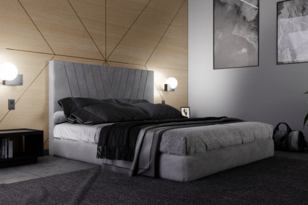 Łóżko ADRA zachwyca eleganckim charakterem i wyjątkowym designem. Wezgłowie tapicerowane we wzór litery V podkreśla nowoczesny styl, a jednocześnie nadaje sypialni przytulnego klimatu.