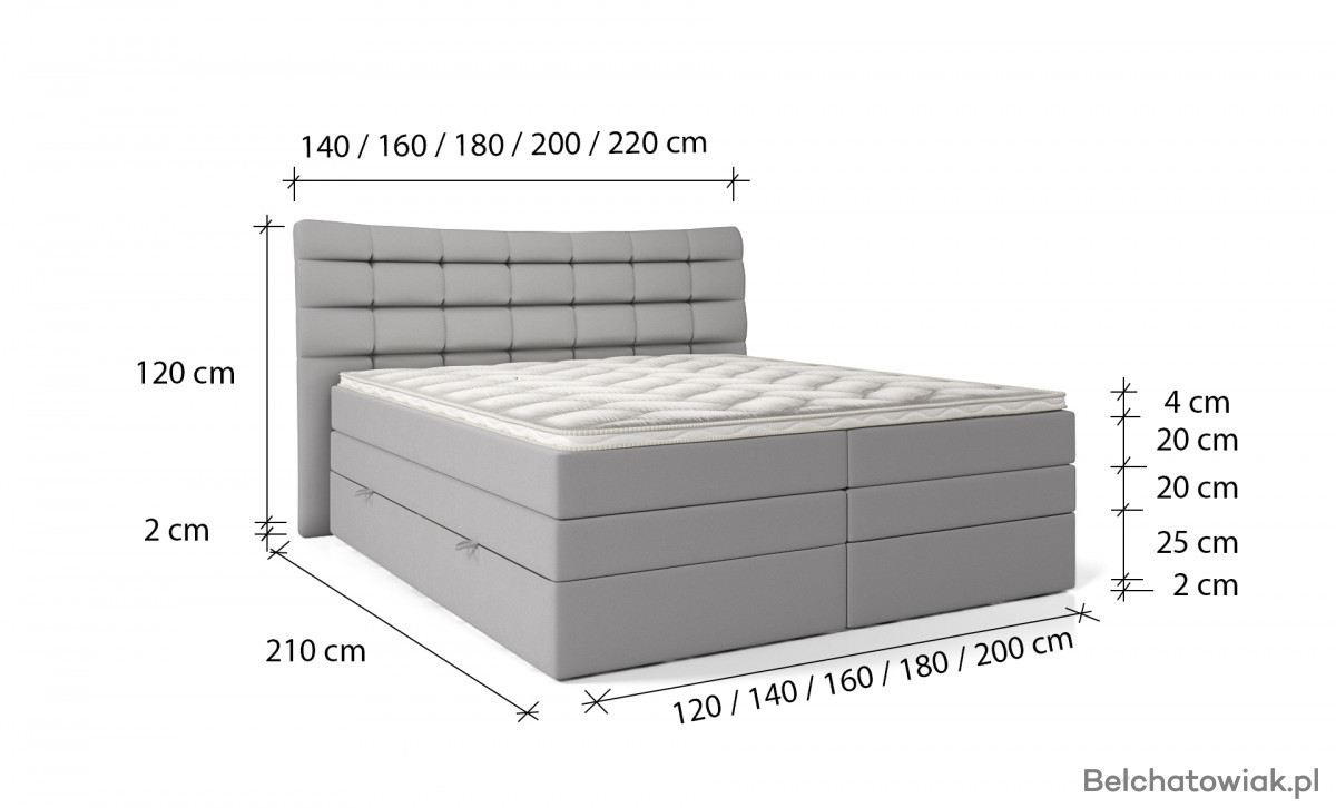 Szerokość: 120 / 140 / 160 / 180 / 200 cm