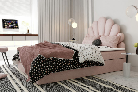 Łóżko KOTILO wyróżnia się niezwykłym zagłówkiem w formie delikatnej muszli. Ten dziewczęcy, subtelny design nadaje sypialni wyjątkowego charakteru i sprawia, że łóżko staje się centralnym punktem aranżacji. Elegancja połączona z wdziękiem tworzy atmosferę pełną przytulności i stylu.