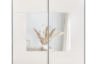 Elegancka szafa przesuwna z lustrem to idealne połączenie funkcjonalności i designu. Front w kolorze kaszmir lub grafit w zestawieniu z dużym lustrem nadaje wnętrzu wyjątkowego charakteru i optycznie powiększa przestrzeń.