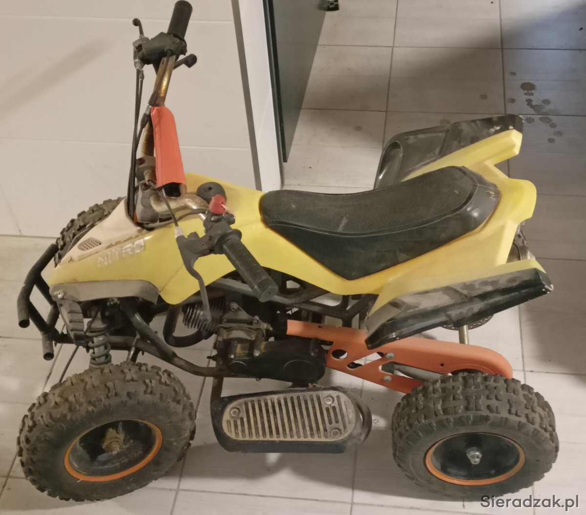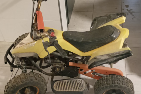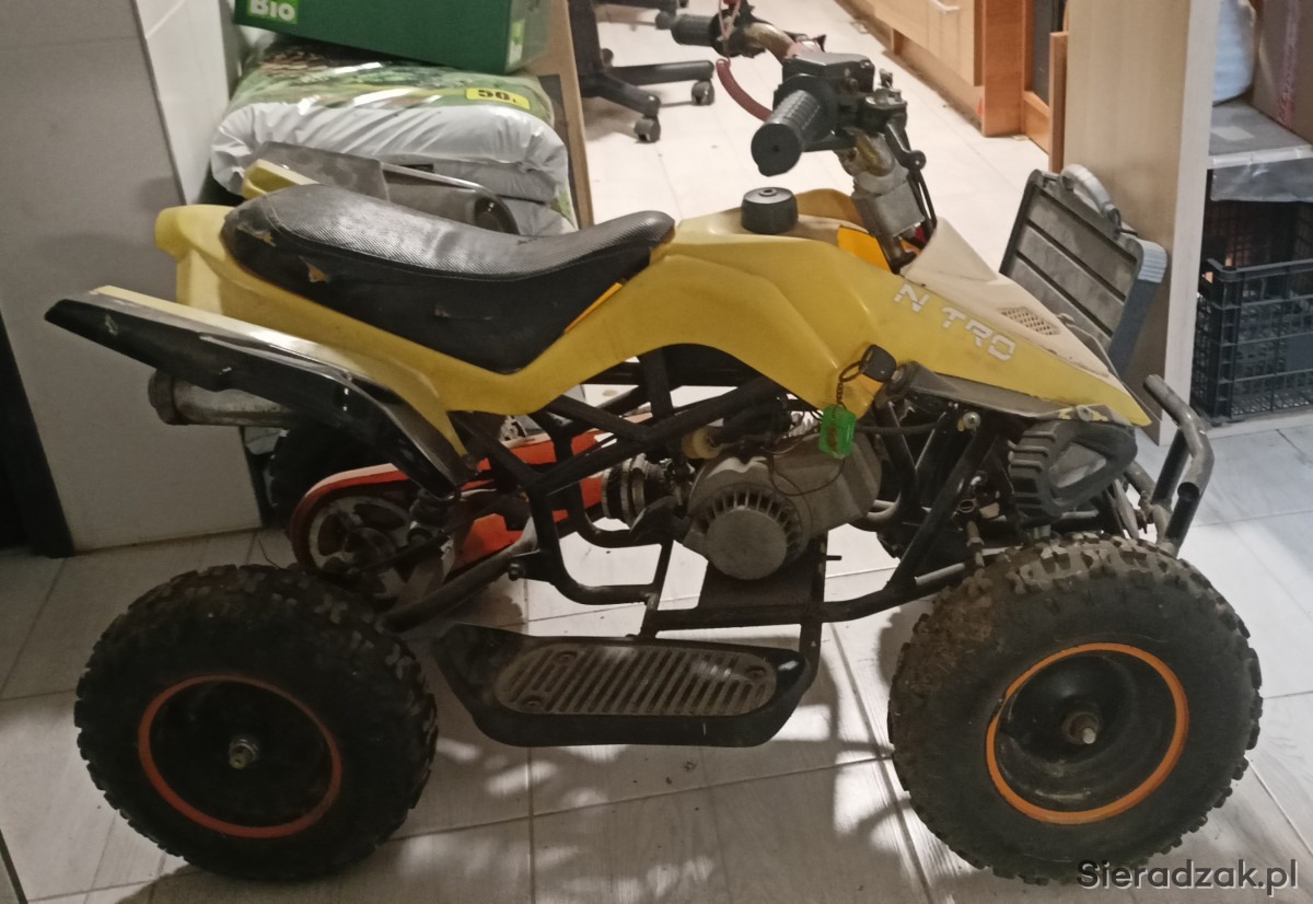Quad 50cm 2t dla dziecka, sprzedaje jako uszkodzony. Od 3 lat stoi nieużywany, już wtedy był problem z gaźnikiem ( do wymiany - nowy ok 60zl). Na ten moment pewnie nie odpala