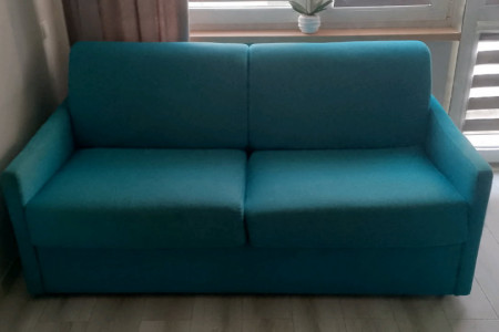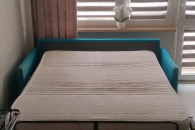 Sprzedam turkusową kanapę rozkladana.Do wyprania. Cena 100 zł. Odbiór własny Sieradz