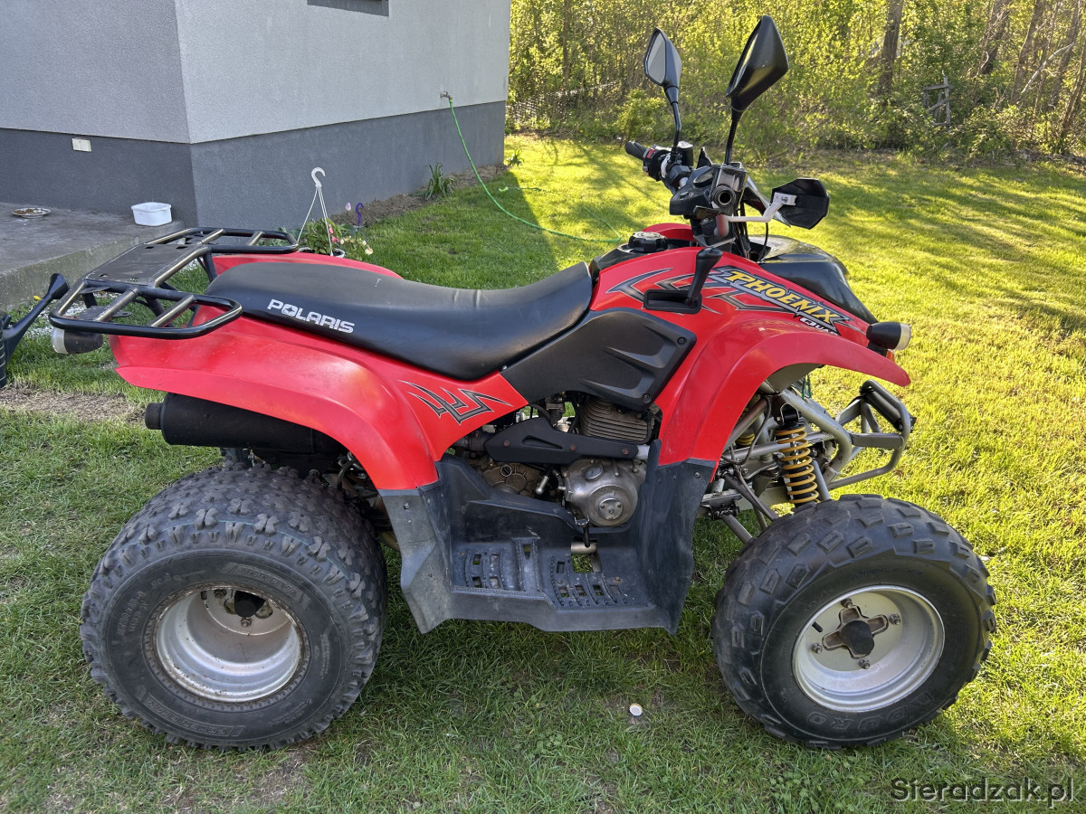 Sprzedam quada Polaris Phoenix 200, zarejestrowany, OC do kwietnia 2026, przegląd do czerwca 2026, rok produkcji 2005, pierwsza rejestracja 2009.