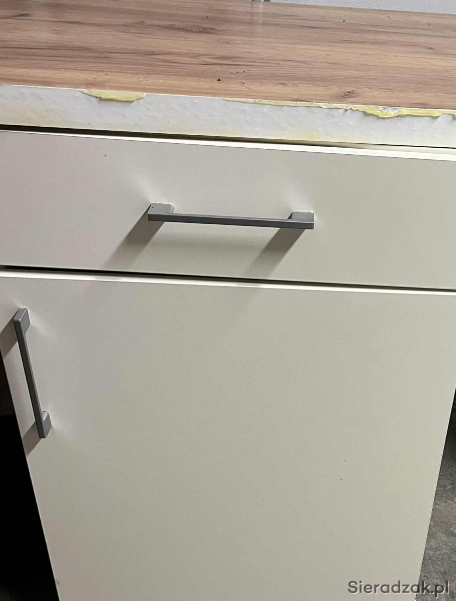 Witam do sprzedania meble kuchenne wymiary szafek stojacych 53x85 i blat w kolorze widocznym 60 cm 5 sztuk i wiszacych 6 sztuk w kolorze biały stan oceniam na dobry, odbior osobisty Sieradz.