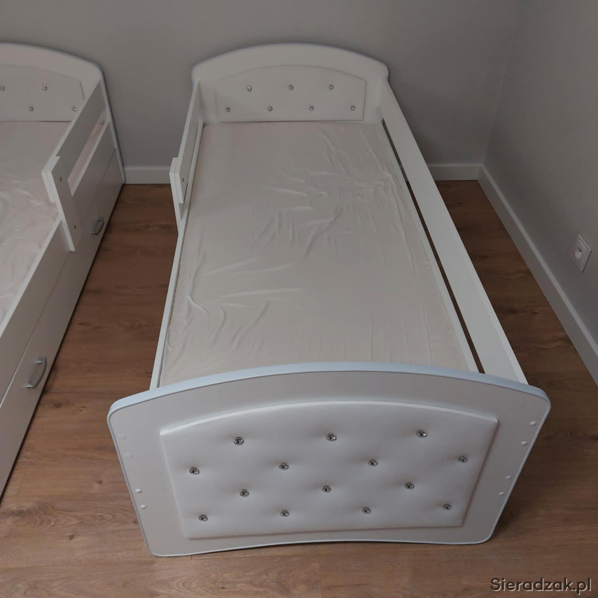 Witam. Do sprzedania posiadam praktycznie nowe łóżko dziecięce, stan jak nowe. Wymiary długość 185cm, szerokość 84cm, wysokość 66cm. Wymiary materaca 80x180cm. Łóżko tapicerowane, posiada dodatkową szufladę na pościel itp.