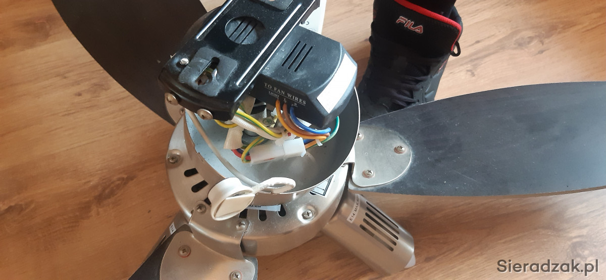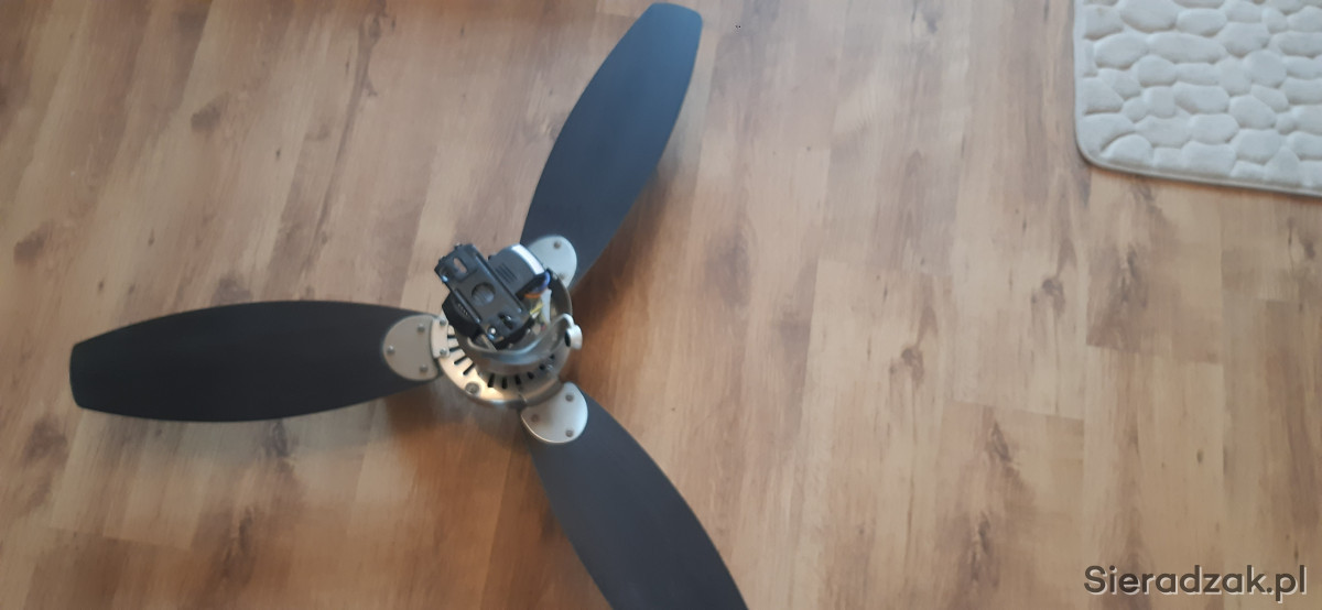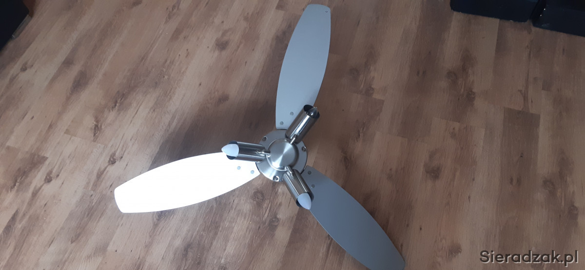 Do sprzedania żyrandol oświetleniowy z wiatrakiem, sterowany z pilota. Bardzo cichy, słychać tylko szum powietrza. Trzy zakresy nawiweu i trzy zakresy oświetlenia (świecą dwie, jedna lub trzy żarówki). Możliwość regulacji nawiewu powietrza (powietrze będzie dmuchać w dół lub w górę). Całkowicie sprawny.