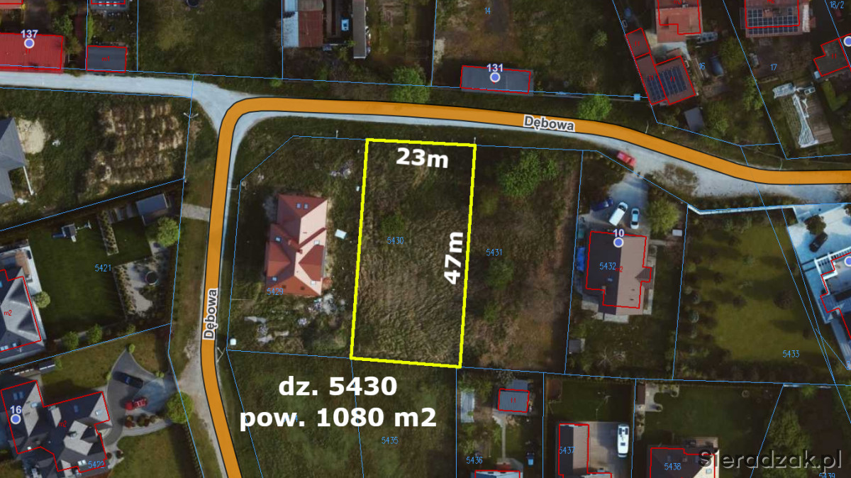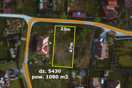 - działka o pow. 1080 m.kw.