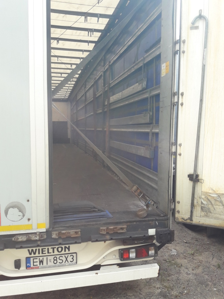 Naczepa WIELTON rocznik 2013, standard, nowe opony SAVA 385x65x22,5, nowy dach podnoszony do załadunku, podłoga w bardzo dobrym stanie, 2 skrzynki narzędziowe, 2 skrzynki na gaśnice, bańka na wodę, 5 rzędów desek aluminiowych, przednia oś podnoszona. Nowe tarcze i nowe klocki na wszystkich osiach.