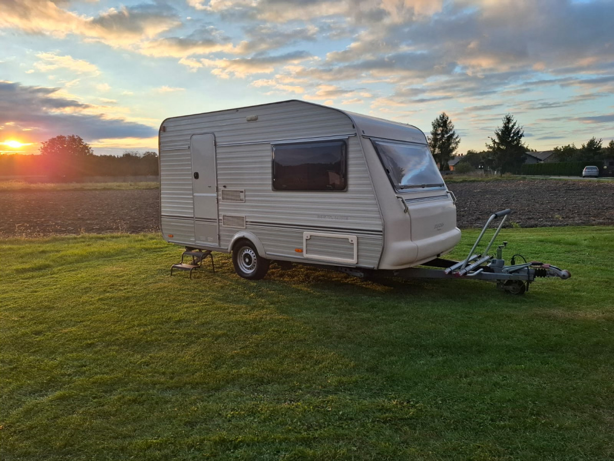 Do sprzedania przyczepa solidnej holenderskiej firmy Avento. Rok produkcji 1998. Przyczepa sprowadzona na kołach, zarejestrowana w Polsce. Bardzo zadbana, czysta, szczelna, mało używana, 2/3 osobowa. Ciepła woda, bagażnik na rowery, przedsionek. Trzech właścicieli od nowości, ostatni był właścicielem 20 lat (od 2005 roku). Dmc przyczepy 1120 kg. Lekko się holuje. Długość całkowita 590cm, szerokość 215 cm, wysokość 240 cm. Wszystkie urządzenia w przyczepie sprawne, gotowa do wyjazdu.