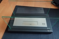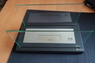Wymiary: szerokość 18cm, długość 35.5cm, wysokość 6cm (podstawa) i 21cm (całość z płytkami szklanymi).