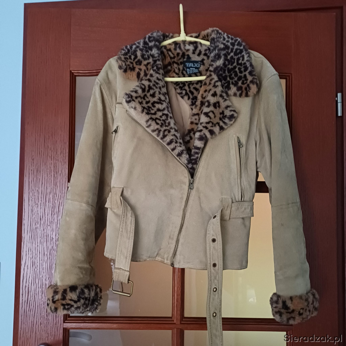 Kurtka skórzana bomberka z kołnierzem panterka