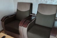 2 fotele , masywne , w kolorze jasno i ciemnym brązie , nie uszkodzone w dobrym stanie