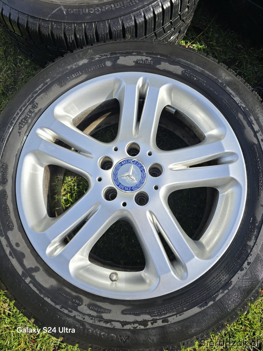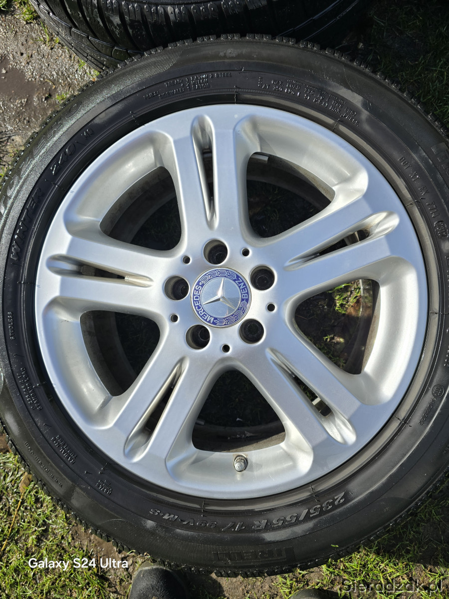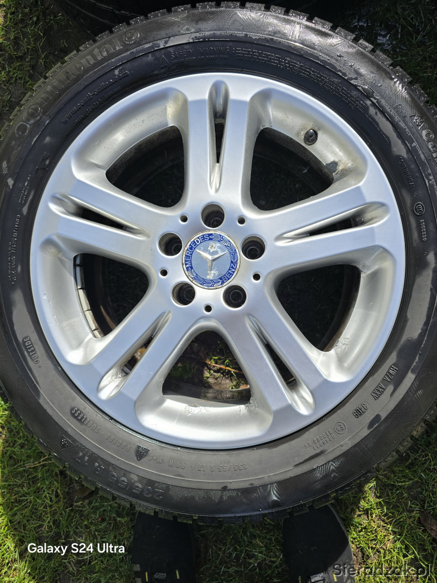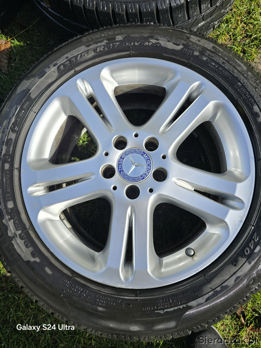 sprzedam 4 oryginalne felgi 17 Mercedesa wraz z oryginalnymi dekielkami; ET 43, 5x112. Felgi bez pozdzieranych rantów i otarć krawężnikowych. W komplecie z dwoma zimowymi oponami Continental ContiWinterContact DOT 3409, bieżnik 5mm, i dwoma zimowymi oponami Pirelli Sottozero Winter DOT 2313, bieżnik 3mm. Ze względu na spore zużycie opon traktuje je jako gratis! Więcej informacji pod numerem telefonu: 791-210-910. Zapraszam