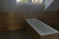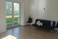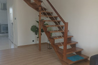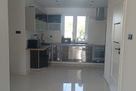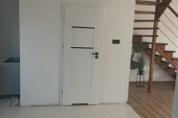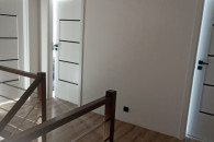 Na ścianach gładzie i na podłodze panele. Kuchnia w płytce i meblach, łazienka u góry w płytkach wykończona, zamontowane nowe schody drewniane połączone z kwasówką.