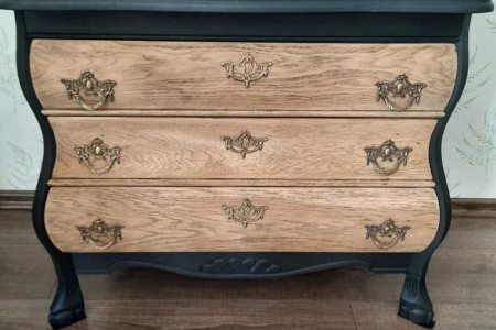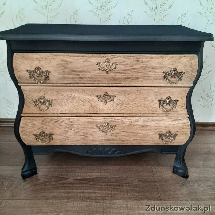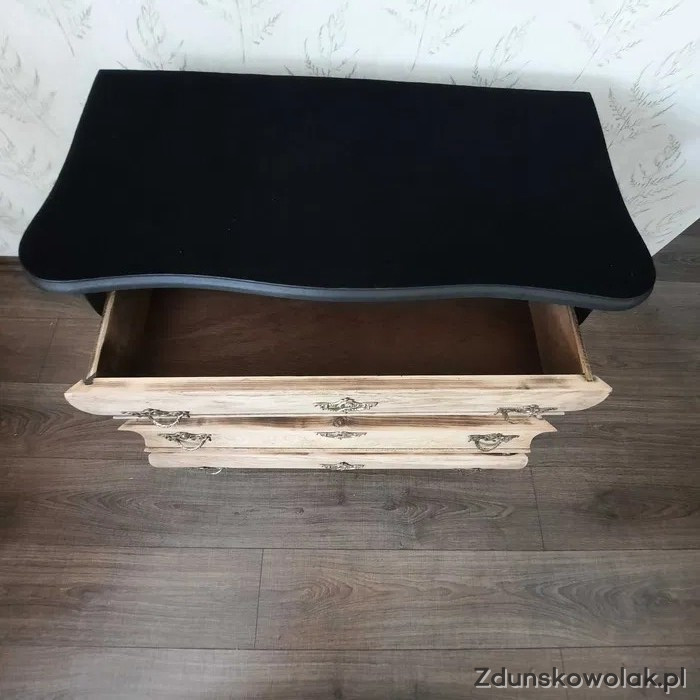 Komoda drewniana trzy szuflady, blat fornir- malowany, zamsz