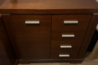 komoda o wymiarach 90x41 cm posiada cztery wysuwane szuflady oraz dwie półki nandokimenty zamykane drzwiczkami.