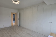 Cała ściana w sypialni głównej zabudowana szafami, szafy w mniejszej sypialni i przedpokoju.