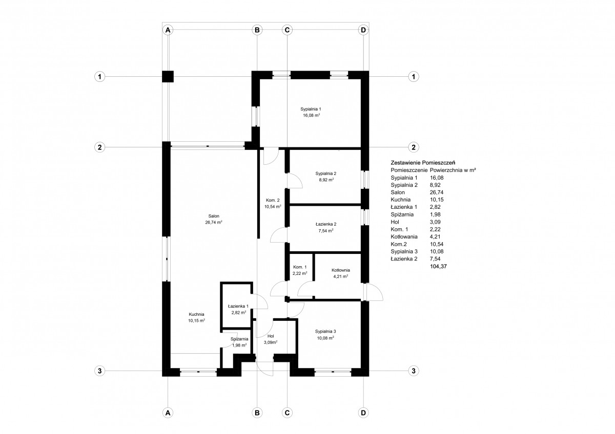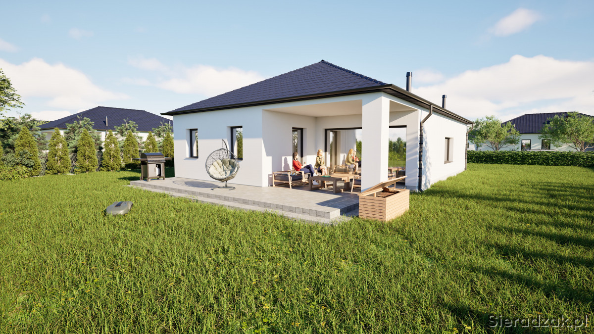 Powierzchnia zabudowy 145,9 m.kw. powierzchnia użytkowa domu 104,37 m.kw.