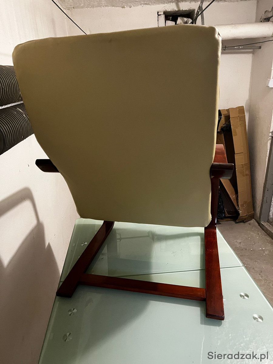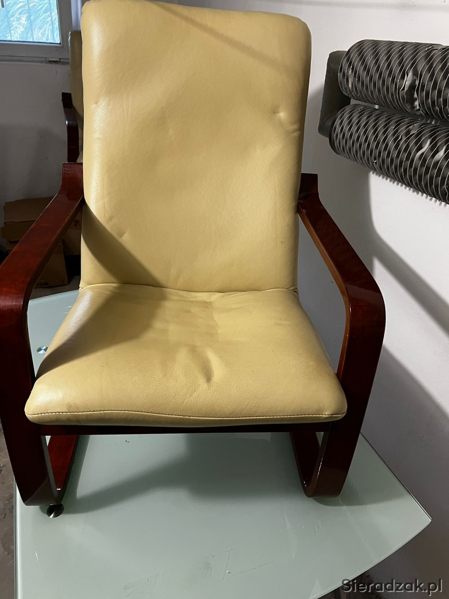Do sprzedania dwa fotele. Całe siedziaska ze skóry, stelaż w kolorze machoń, z połyskiem.
