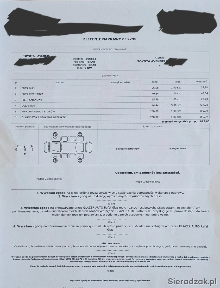 • Świeży olej + filtry • 26.09.2025 r.