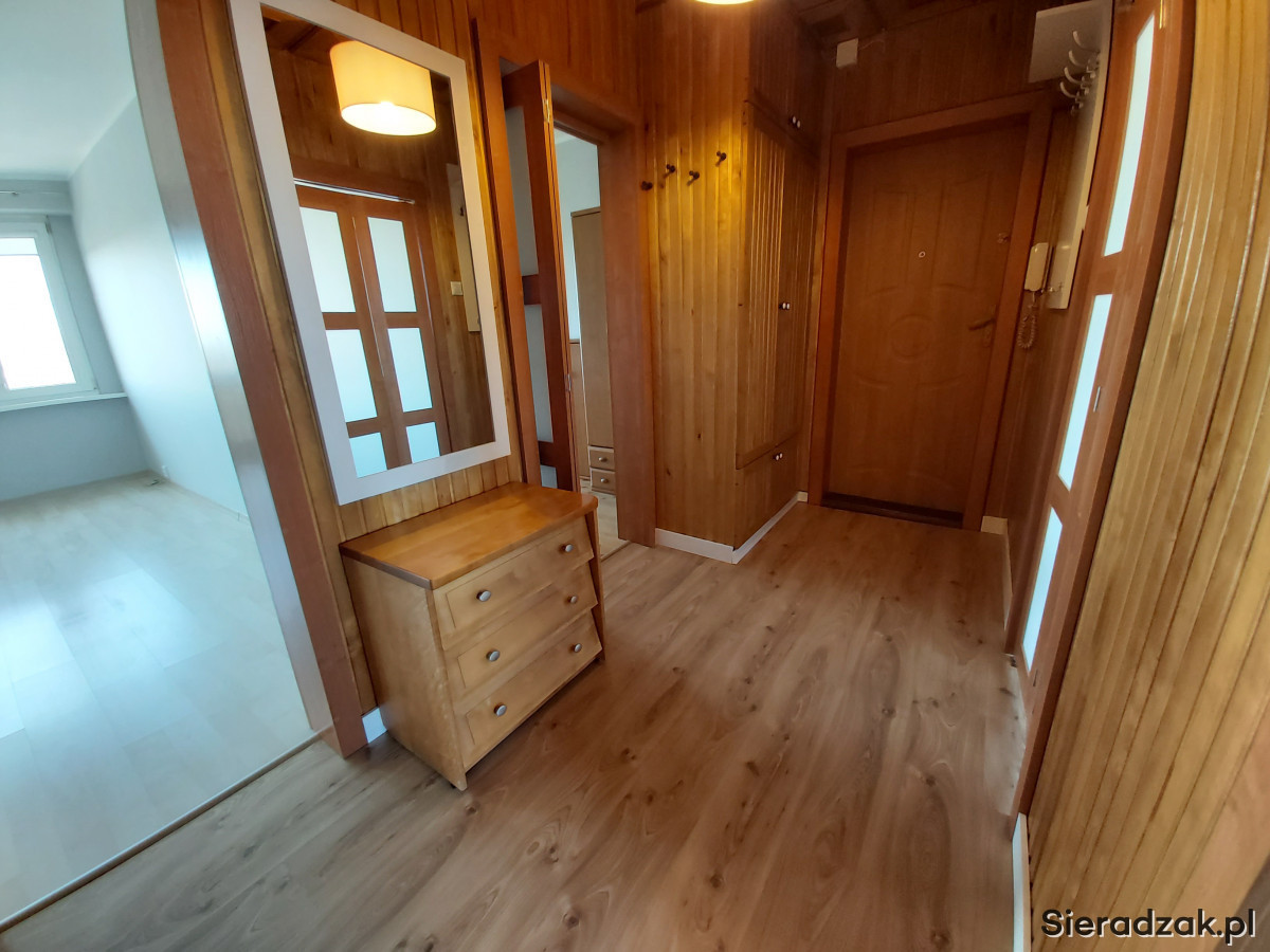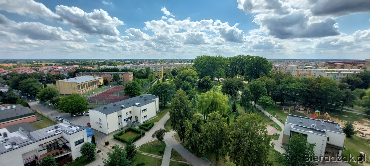 Do wynajęcia widoczne na załączonych zdjęciach mieszkanie składające się z 3 ustawnych pokoi, kuchni, łazienki, oddzielnego WC oraz balkonu o łącznej powierzchni prawie 50m2 znajdujące się w ścisłym centrum Sieradza – al. Pokoju. Lokalizacja zapewnia doskonały dostęp w promieniu kilkudziesięciu / kilkuset metrów do marketów (Sedal, Biedronka, Lidl), lokalnego ryneczku, placówek bankowych, przychodni, placówek oświaty, zakładów kosmetycznych i fryzjerskich, restauracji, dworca PKS, postojów taxi, galerii, sklepów Żabka, sklepów spożywczych i innych punktów handlowo-usługowych. Dodatkowym atutem mieszkania jest bezpośrednie sąsiedztwo z parkiem, licznymi placami zabaw a także licznymi miejscami postojowymi dla samochodów. Do mieszkania przynależy piwnica a także zamykany schowek na półpiętrze. Budynek posiada windę, która zapewnia komfortowy dostęp do mieszkania, jest ocieplony, zaopatrzony w ciepłą wodę i ogrzewanie bezpośrednio z PEC-u (Przedsiębiorstwo Energetyki Cieplnej), dostęp do budynku zabezpieczony jest domofonem. Mieszkanie czyste i zadbane, gotowe do wynajęcia, ze względu na lokalizację bardzo ciche i komfortowe zapewniające dodatkowo niesamowity widok na panoramę miasta.