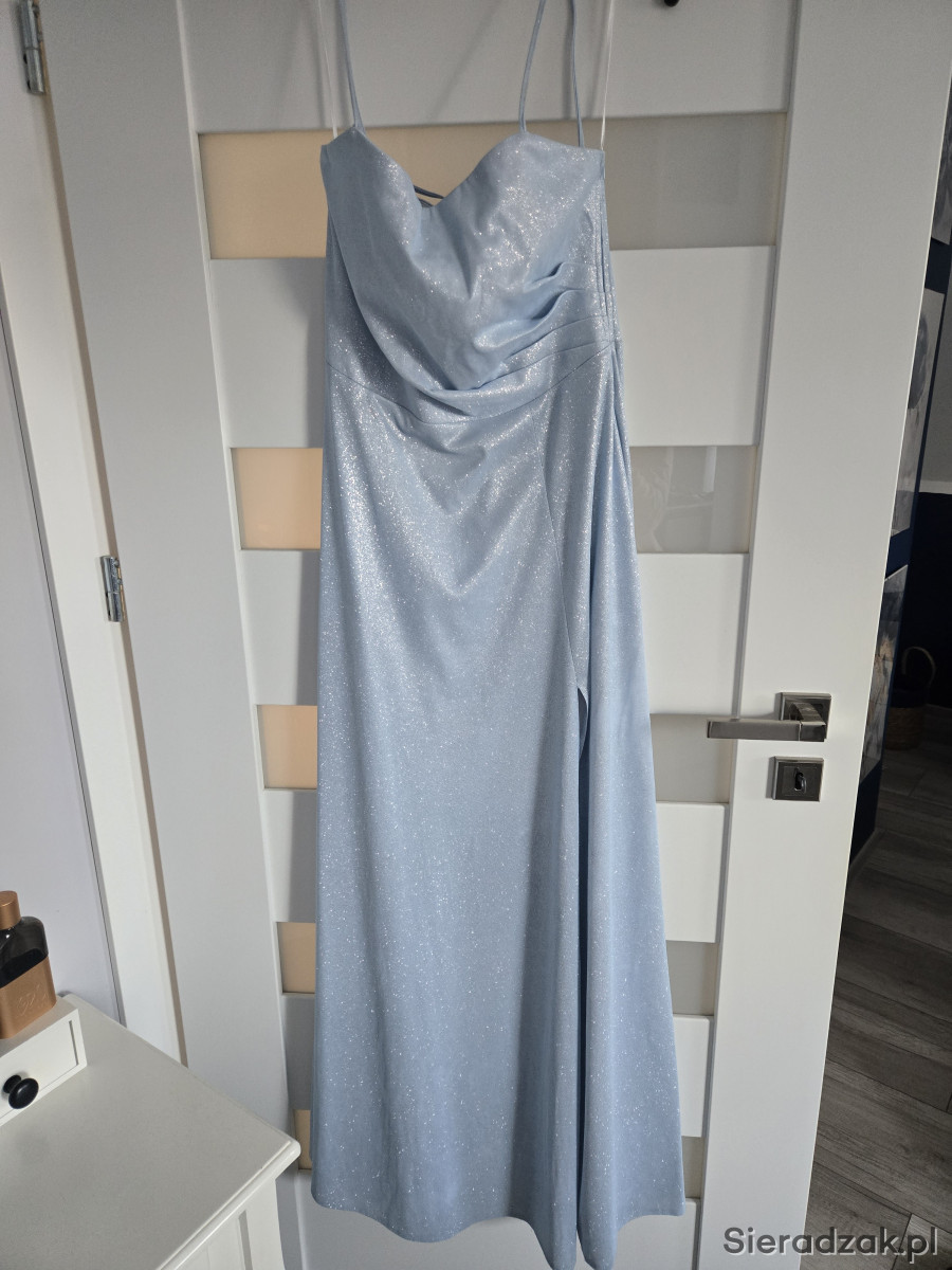 Śliczna błękitna błyszcząca sukienka założona tylko raz zakupiona w Siearadzu w butiku